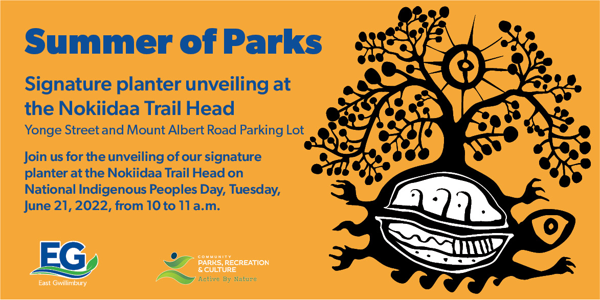 Join us on June 21, 2022, National Indigenous Peoples Day, for the unveiling of our signature planter at the Nokiidaa Trail Head! The ribbon-cutting ceremony and unveiling begin at 10 a.m. Meet us in the Yonge Street and Mount Albert Road Parking lot.