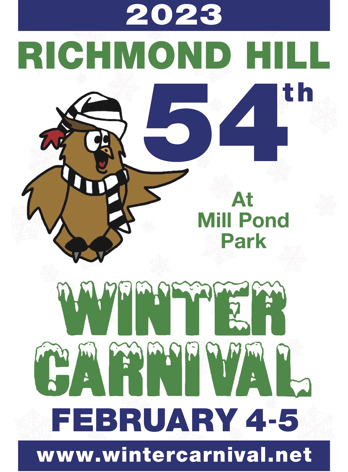 The 54th Richmond Hill Winter Carnival returns Sat and Sun, Feb. 4 and 5, 2023 at Mill Pond Park, Mill and Trench streets, Richmond Hill! Enjoy traditional activities such as children’s games and crafts, the wood carver, children’s colouring contest, falconry displays, live entertainment, hot drinks, photos with Ookpik and, of course, the popular Sunday pancake breakfast. New this year are selfie/Instagram stations, play igloos for young children, Batman and his Batmobile, trackless train ride for children and a family-friendly Saturday spaghetti dinner!