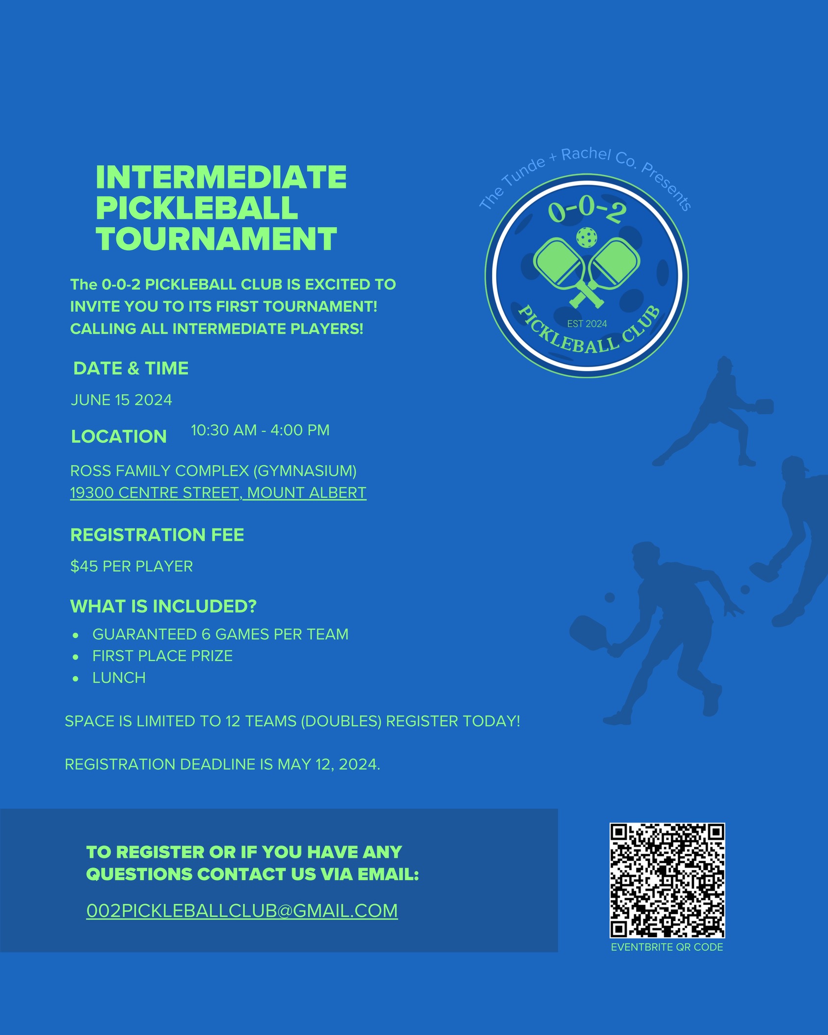 SPACE IS LIMITED TO 12 TEAMS. ( doubles) REGISTER TODAY!
