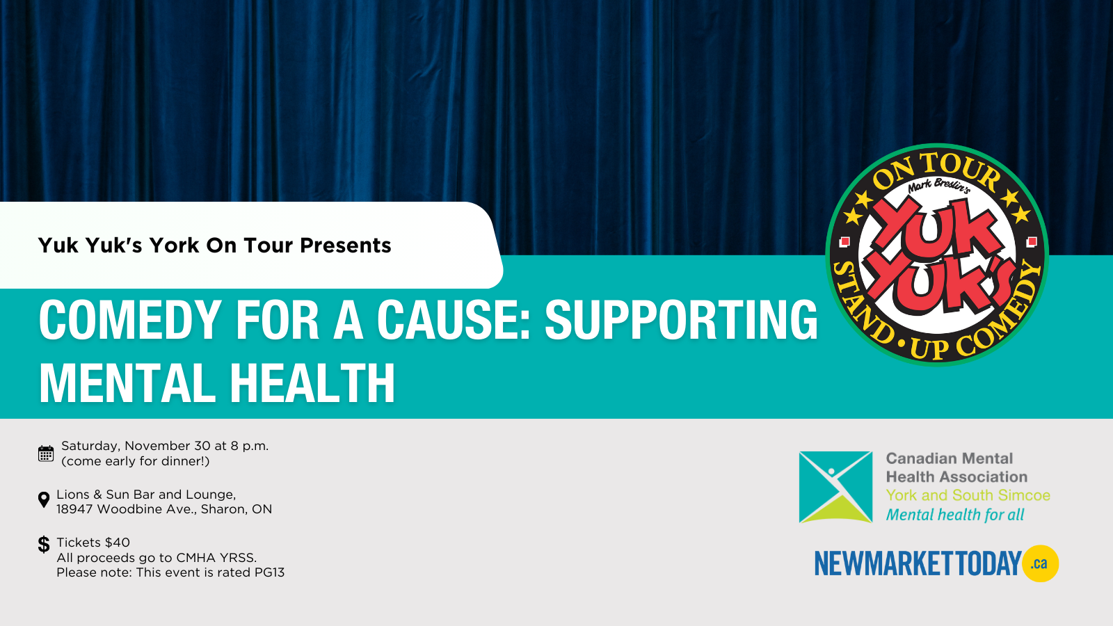 In partnership with Yuk Yuk's, we’re excited to invite you to a special evening of laughter in support of the Canadian Mental Health Association York Region and South Simcoe!