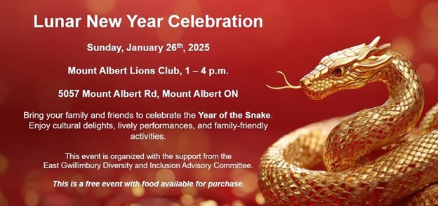 Join to celebrate the Lunar New Year on Sunday, January 26 from 1 p.m. to 4 p.m. at the Mount Albert Lions Club!